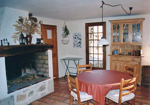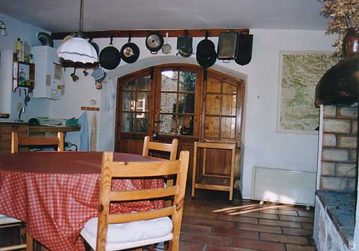 Die Küche mit Blick von der Terrassentür in Richtung Innenhof